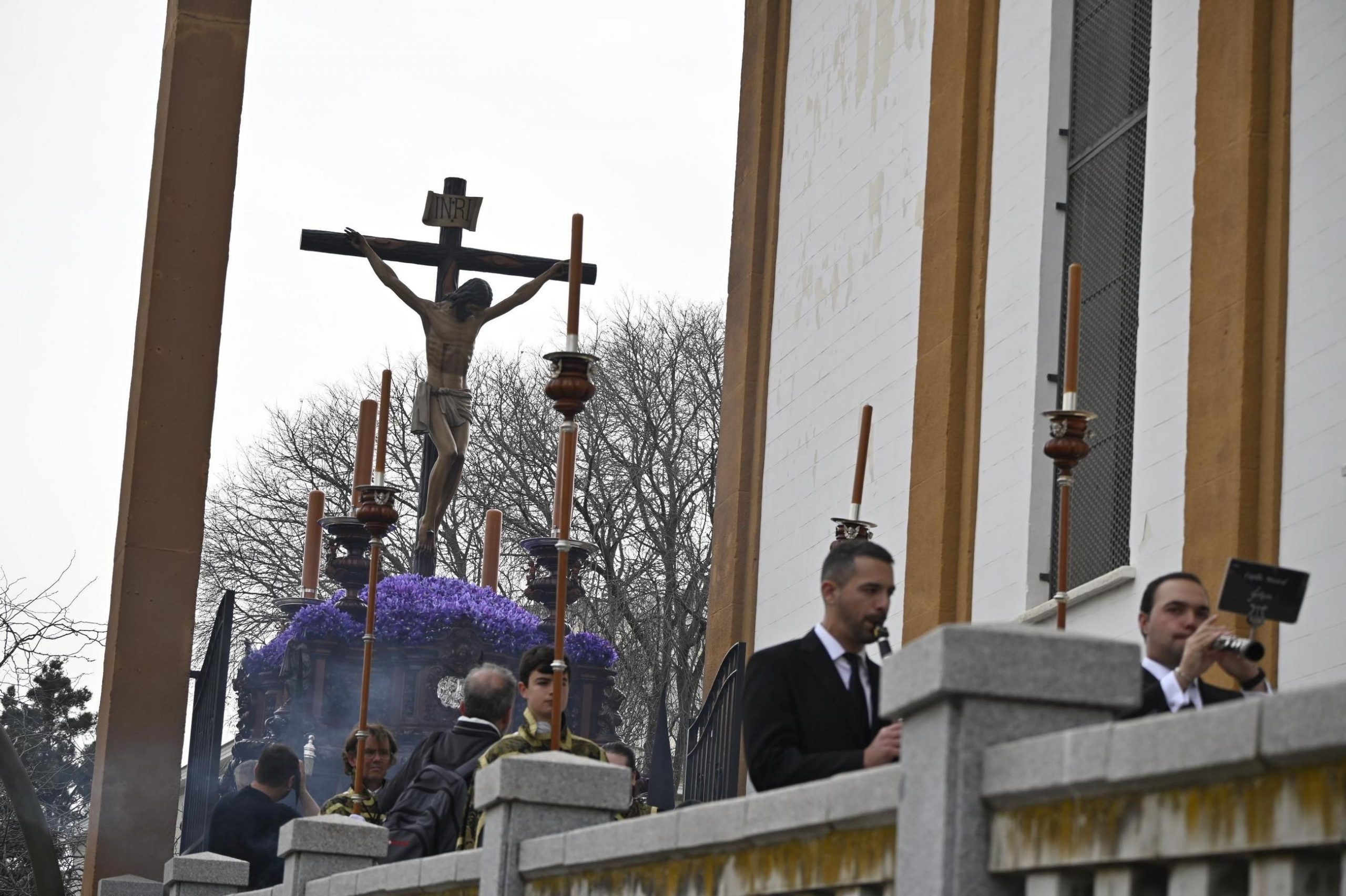 El Martes Santo 5 de abril de 1950 tuvo lugar la primera salida procesional del crucificado sobre un paso tallado por Juan Pérez Calvo, con medallones de plata de Jesús Domínguez y cuatro hachones en color tiniebla. En 1956, Antonio León Ortega realizó la imagen de Nuestra Señora del Valle, que fue bendecida el 18 de marzo de ese año. La hermandad permaneció en la Parroquia del Sagrado Corazón de Jesús hasta el Martes Santo de 1960, cuando realizó su última salida desde allí y quedó establecida en la Parroquia de San Sebastián.